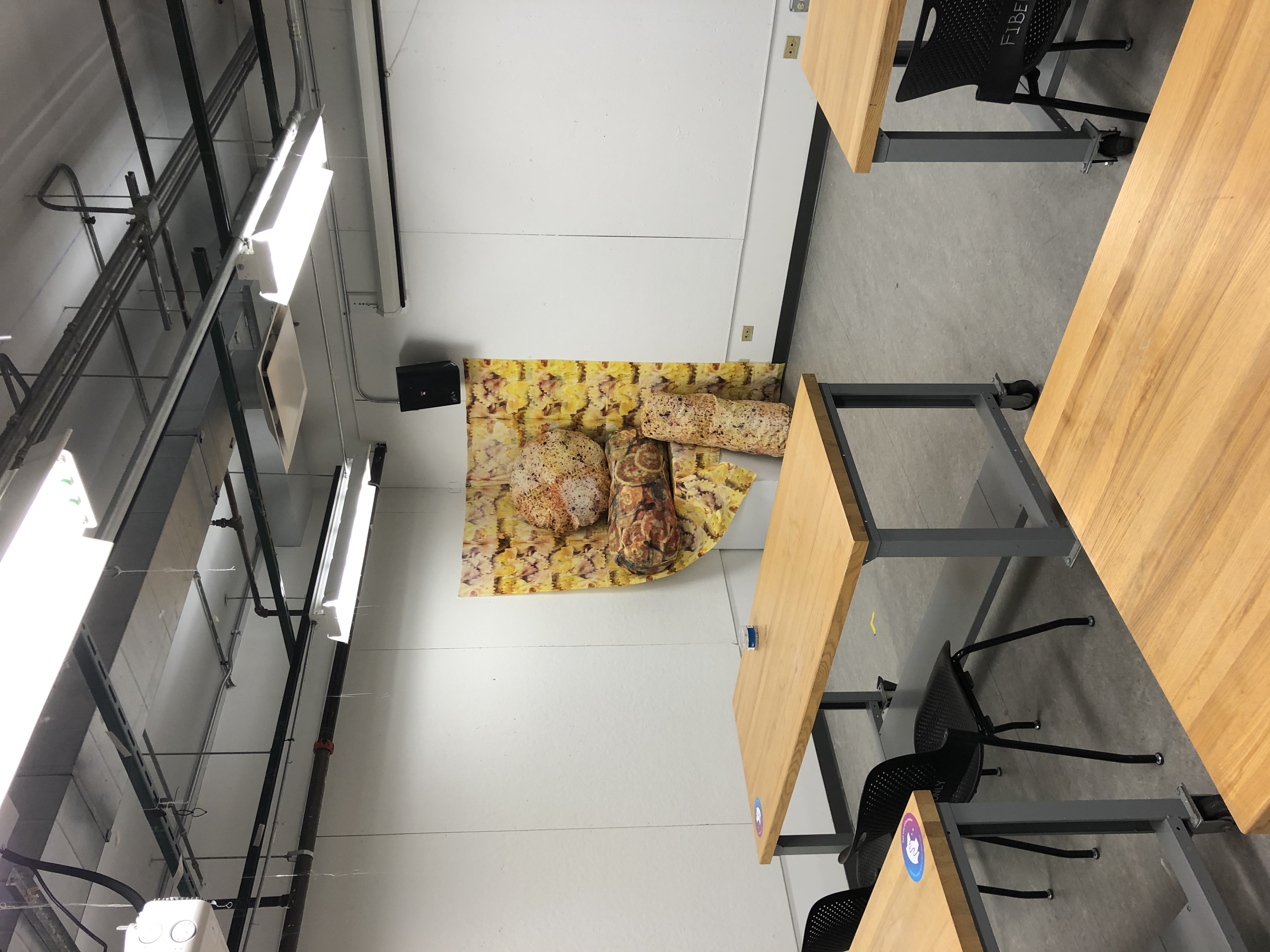 This is an installation made of CMYK screen printed repeat patterns. The patterns were created using photographs that had been manipulated in Photoshop. The pattern was separated into 4 layers; Cyan, Magenta, Yellow, and Black (CMYK). These were then screen printed onto muslin, sewn together, and stuffed with brown paper.